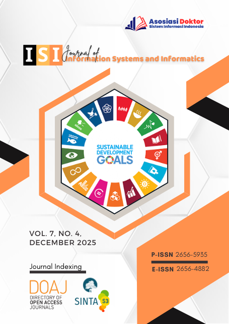 Journal of Information Systems and Informatics (JournalISI) Volume 7, Number 4 December, 2025 Published 50 articles. There are ... Authors and ... affiliations from ... countries (Indonesia, ) as follows: